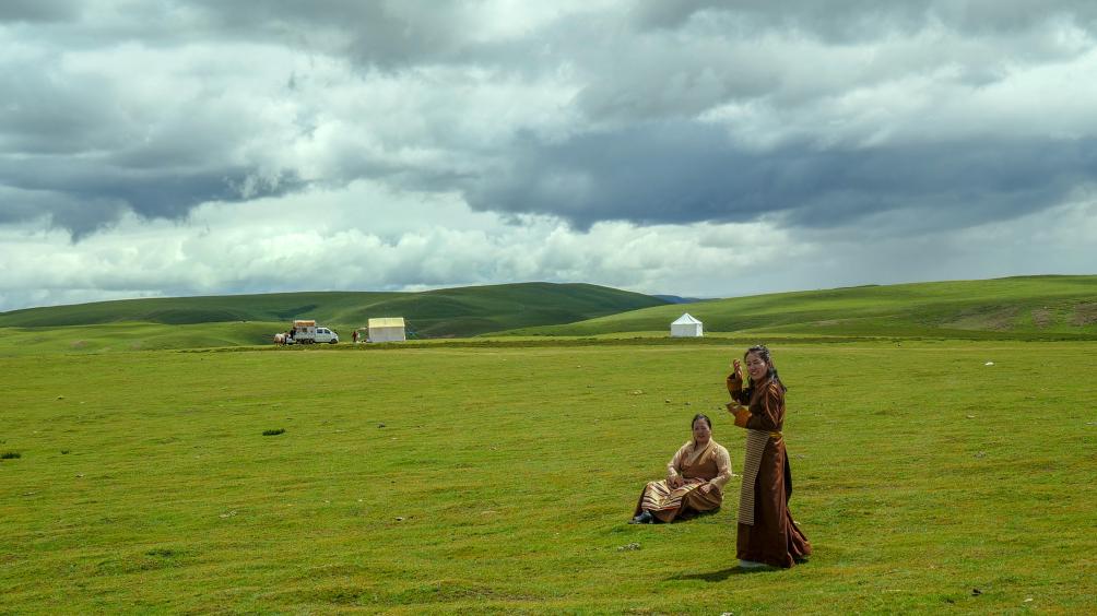 8月11日,游客在羌塘草原上賞景游樂(lè)。新華社記者 陳澤鵬 攝