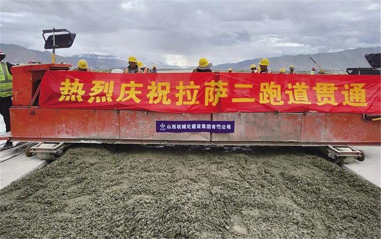 近日,隨著施工現(xiàn)場攤鋪機(jī)轟鳴聲的戛然而止,拉薩貢嘎機(jī)場新建第二跑道最后一倉混凝土完成澆筑,標(biāo)志著拉薩貢嘎機(jī)場新建第二跑道順利完成全線貫通。