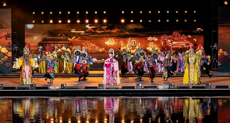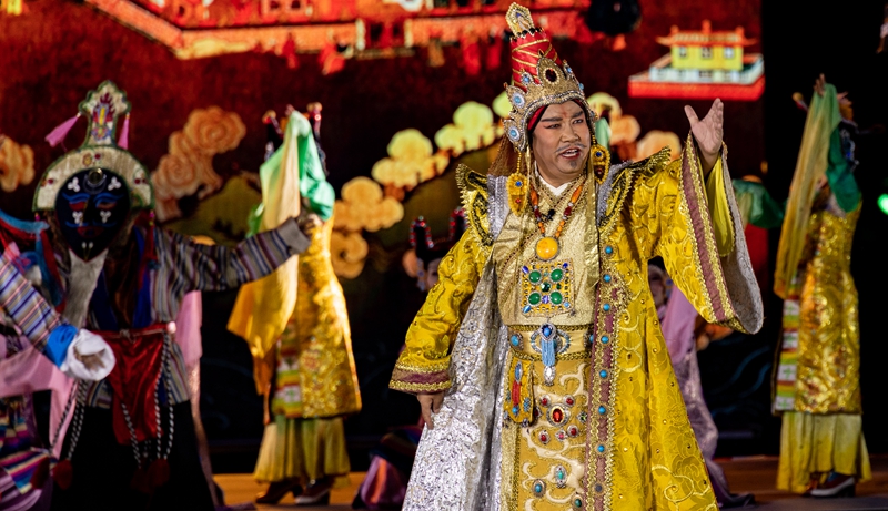 在2023拉薩雪頓節(jié)開幕式文藝演出上,京劇藏戲《文成公主》再次上演(8月16日攝)。丁增尼達 攝