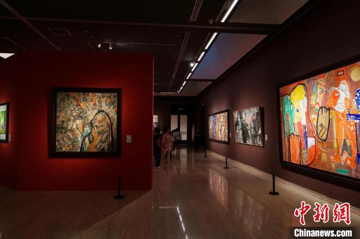 “藏色——巴瑪扎西畫展”亮相中國美術(shù)館,圖為展覽現(xiàn)場?!“椴匚幕﹫D