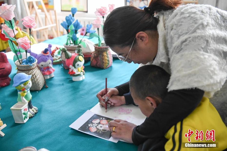 圖為那曲市特殊教育學(xué)校老師教學(xué)生畫畫。貢嘎來(lái)松 攝