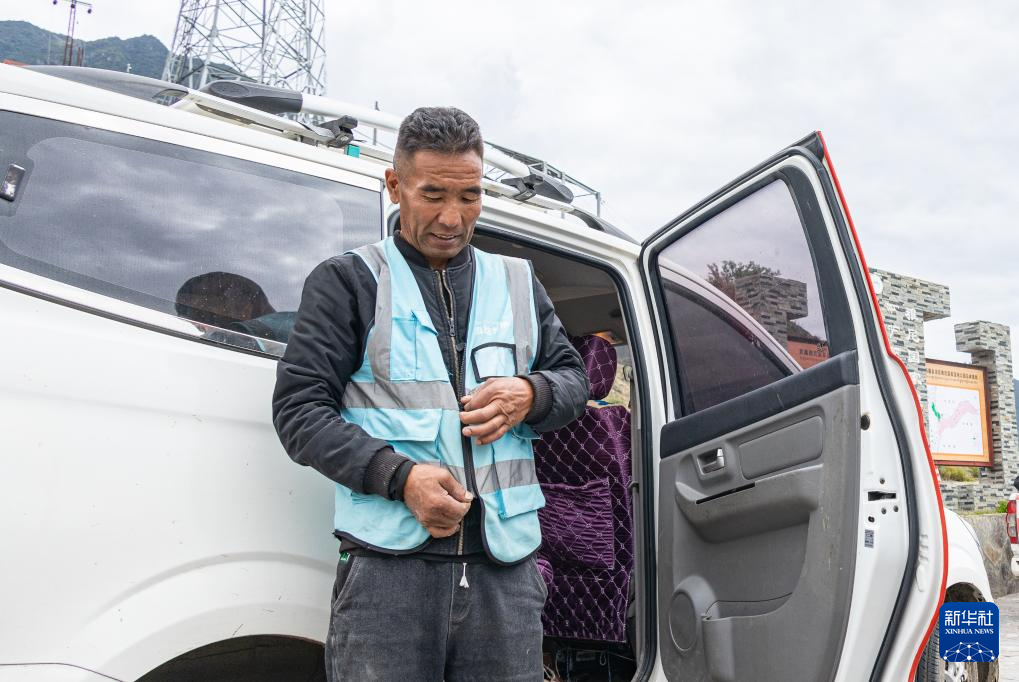 雅尼國(guó)家濕地公園管護(hù)員普布多杰在穿工作馬甲,準(zhǔn)備開(kāi)始巡護(hù)工作(9月8日攝)。新華社發(fā)(丁增尼達(dá) 攝)