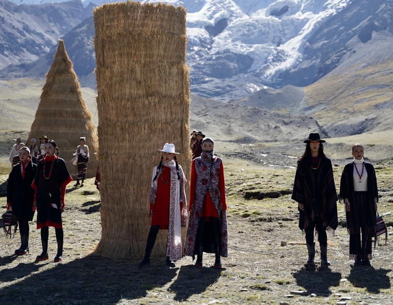 以雪域高原的藍(lán)天白云為幕,以廣袤無垠的高山草甸為毯,以金光燦燦的青稞裝飾為景……9月17日上午10時(shí)許, 來自上海金山的時(shí)裝品牌:沙涓“雪域·回響”喜馬拉雅大秀在西藏日喀則江孜縣乃欽康桑雪山下舉行,向現(xiàn)場觀眾呈現(xiàn)了一場西藏氆氌手工藝大秀,并通過視頻直播全球首發(fā),展現(xiàn)非遺復(fù)興。