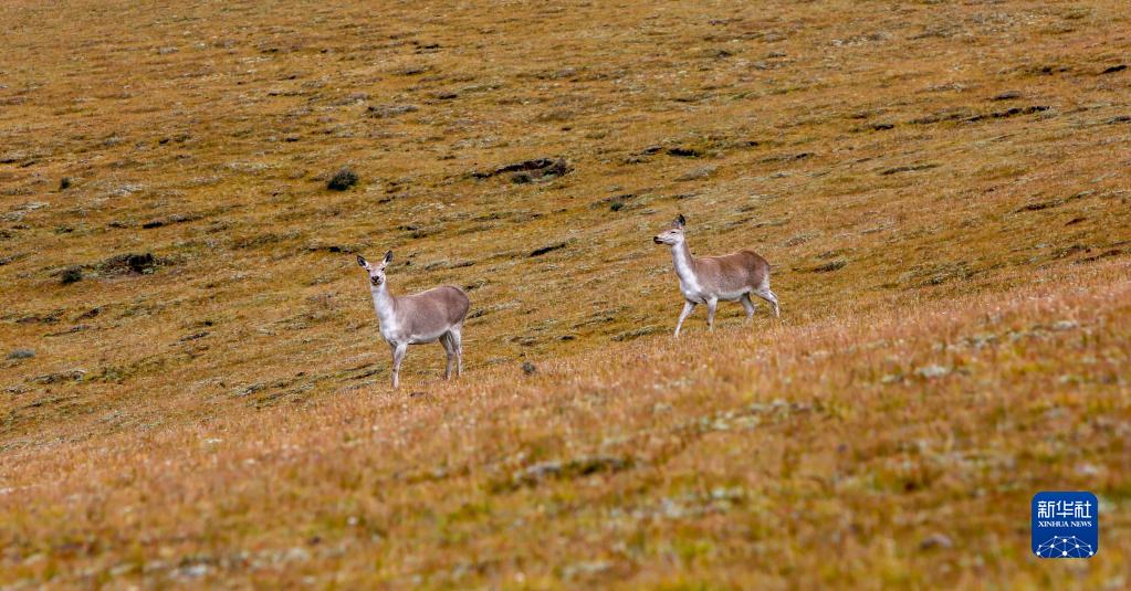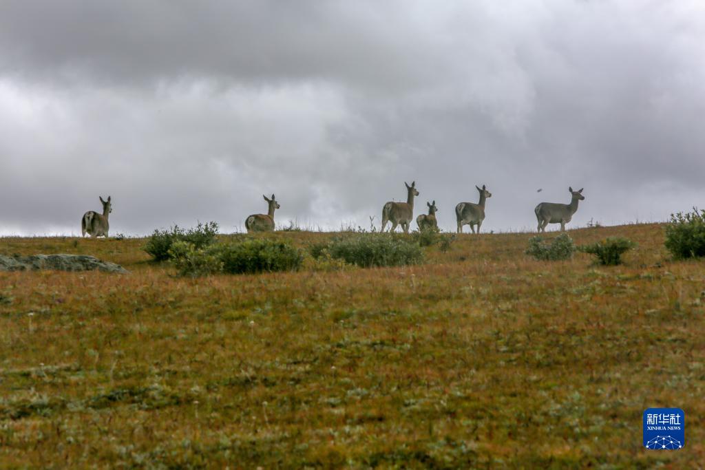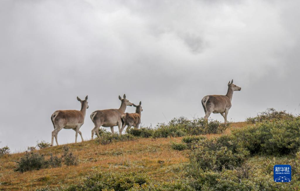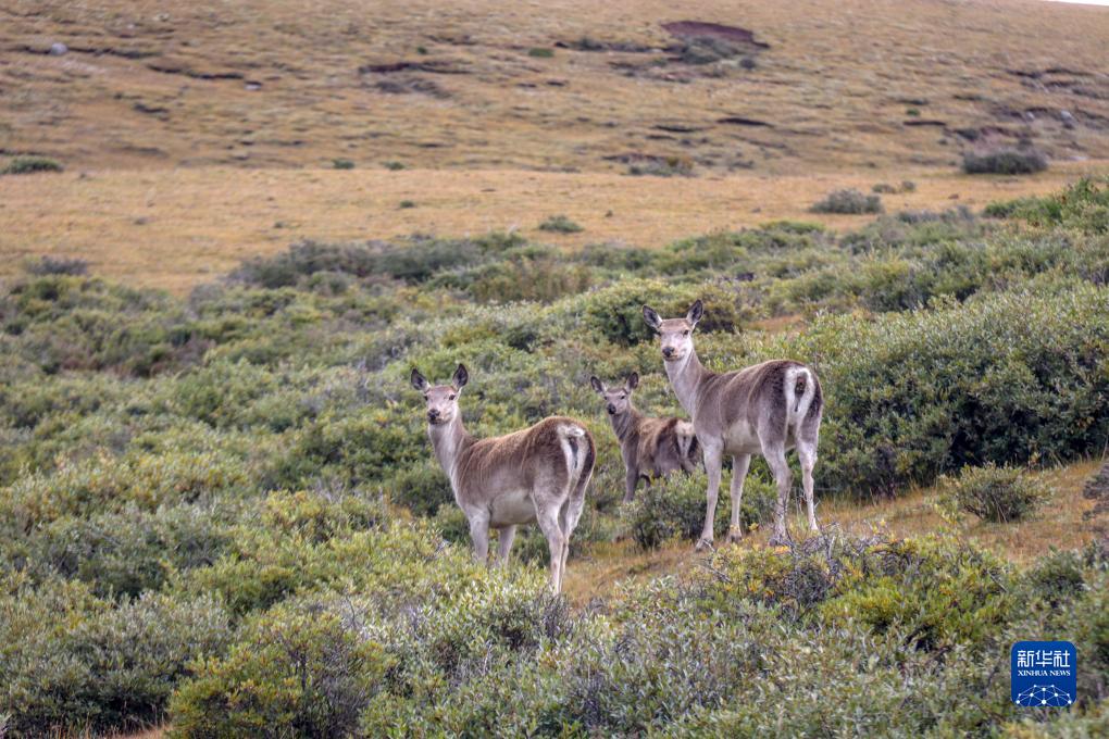 9月24日,幾只西藏馬鹿出現在位于西藏自治區(qū)山南市桑日縣的貢德林草原上。新華社記者 邵澤東 攝