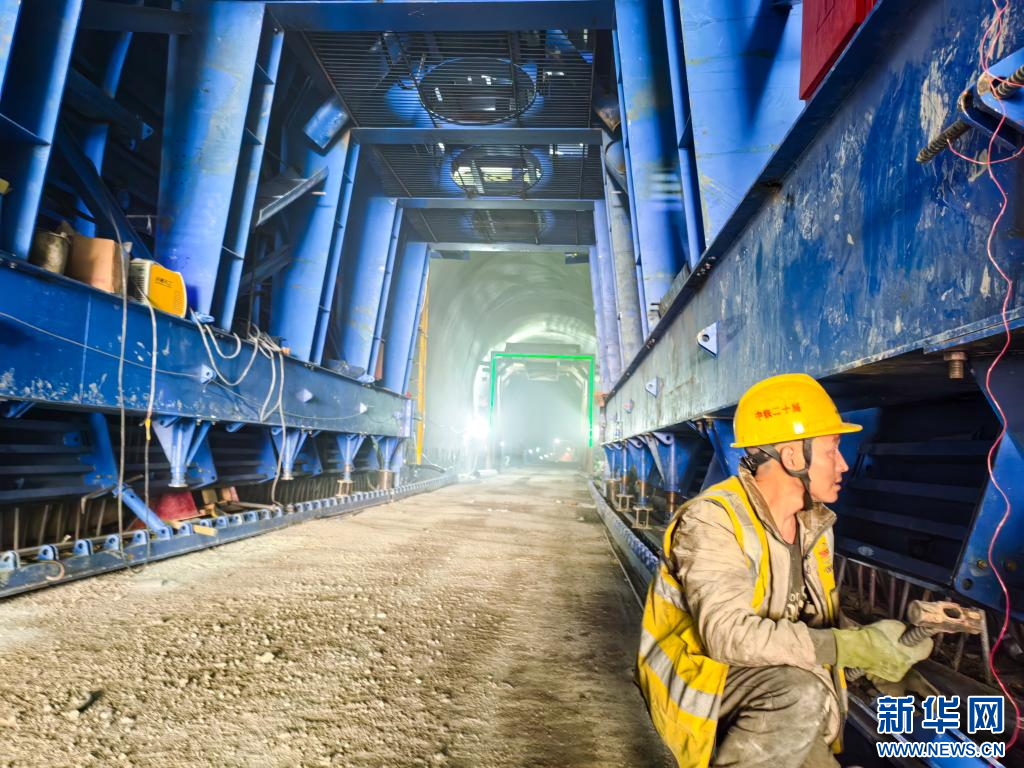 中鐵二十局建設(shè)者進(jìn)行然烏隧道平行導(dǎo)洞二襯臺(tái)車加固(受訪者供圖)