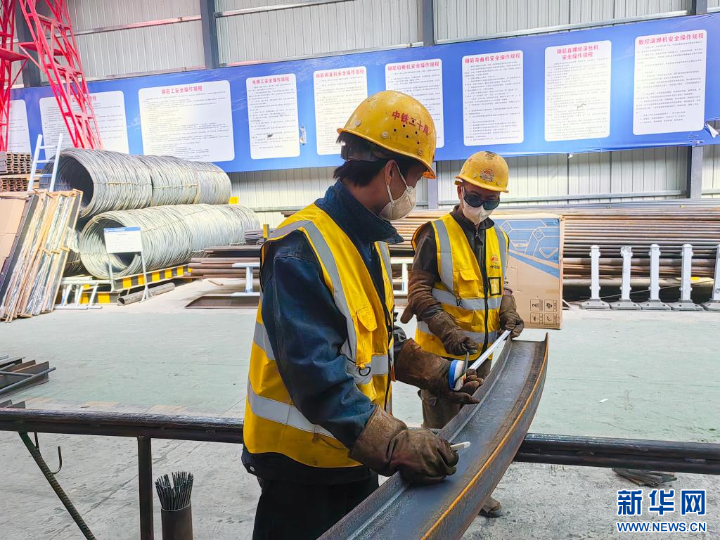 中鐵二十局建設(shè)者正在進(jìn)行然烏隧道鋼拱架加工 (受訪者供圖)