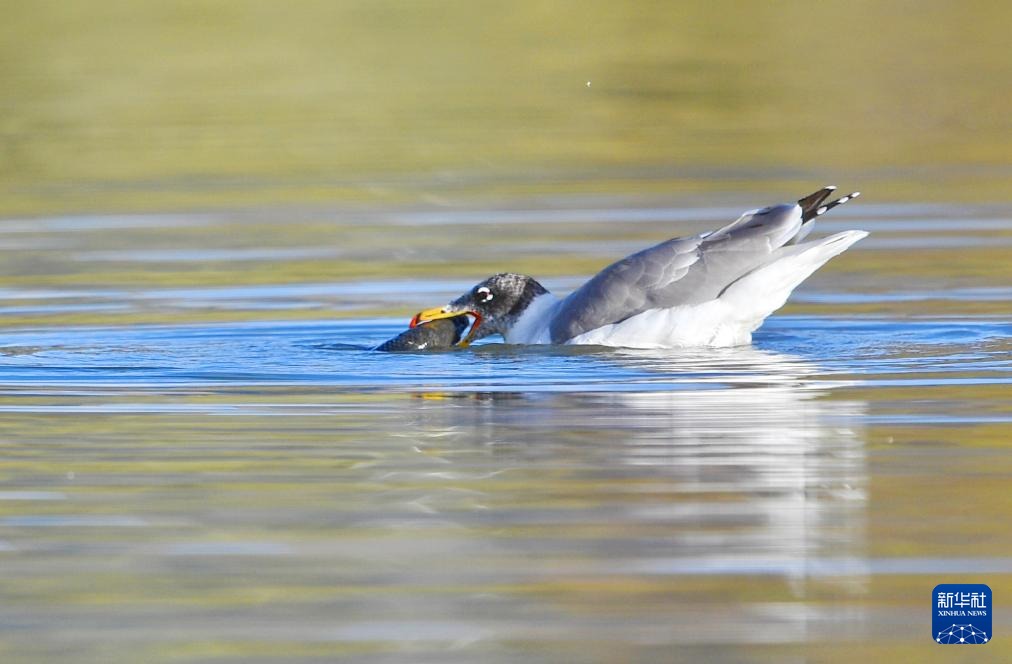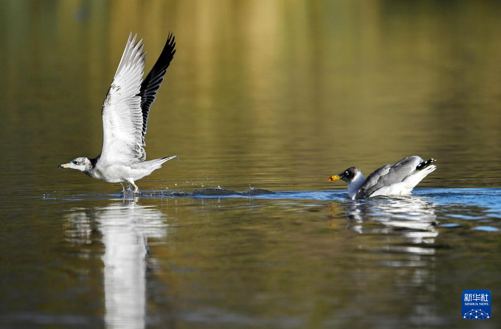 金秋十月,漁鷗在西藏拉薩市國家級(jí)自然保護(hù)區(qū)拉魯濕地里嬉戲,惹人喜愛。