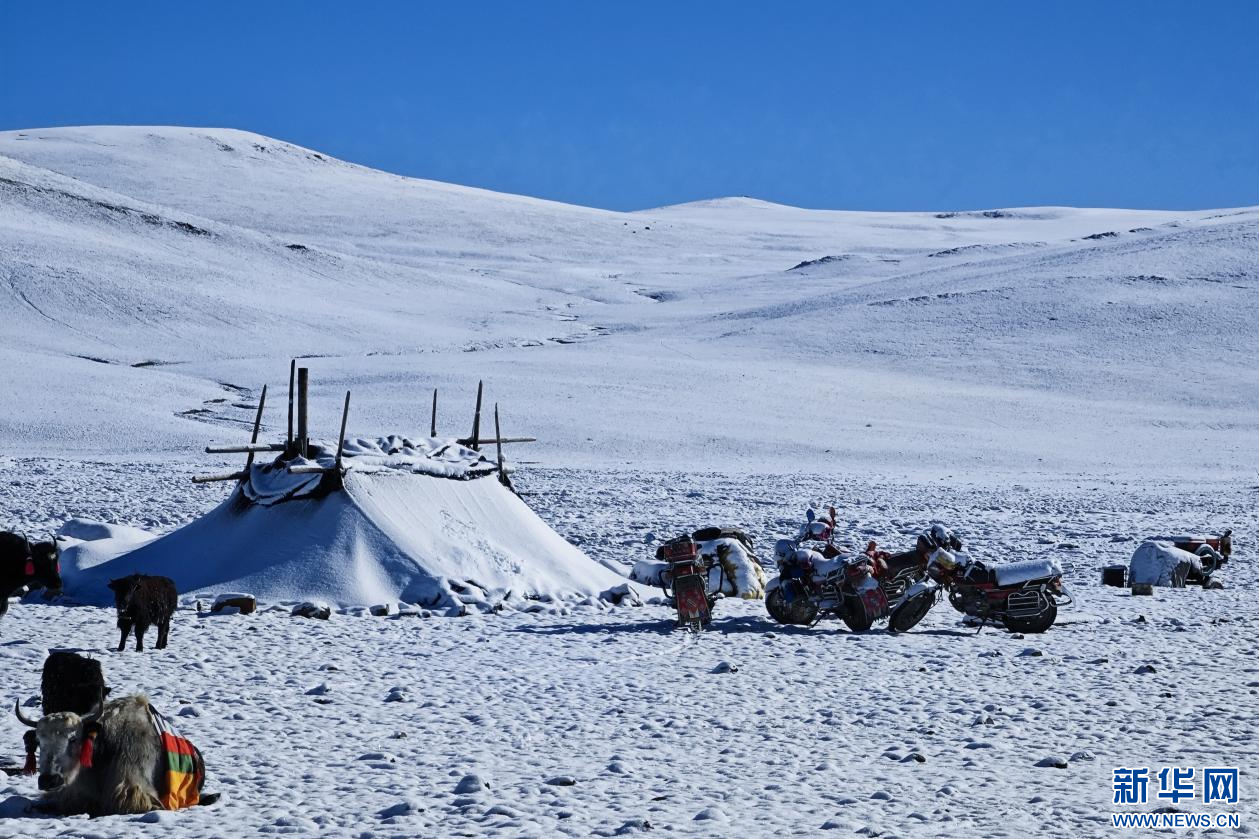 10月13日遠(yuǎn)眺雪中哲古湖。新華網(wǎng) 柑丹鴦琦 攝