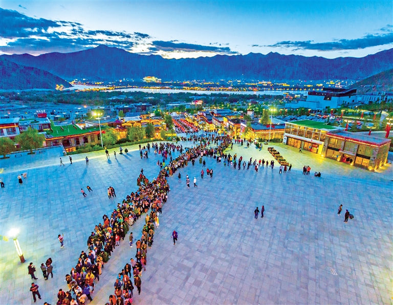 十年匠心成就雪域經(jīng)典。2023年,《文成公主》大型史詩劇已走到了第十一個(gè)演出季,累計(jì)演出場次超1800場,演出及旅游配套累計(jì)接待觀眾超400萬人次。游布達(dá)拉宮、逛八廓街、觀《文成公主》,已成為拉薩游的標(biāo)配。