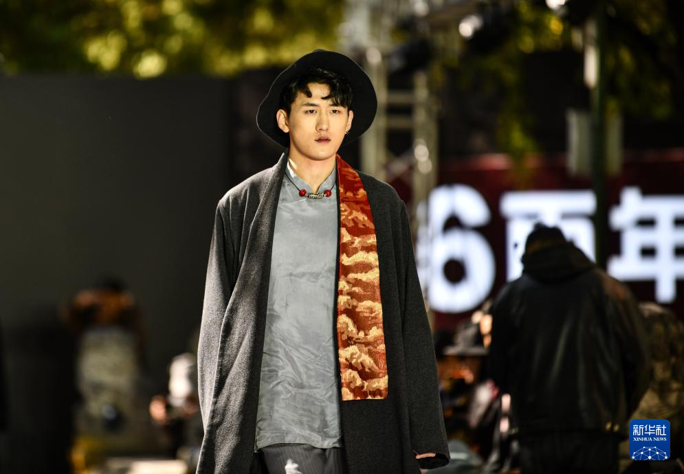 10月21日,模特在時裝發(fā)布會上展示創(chuàng)新藏裝。新華社記者 晉美多吉 攝