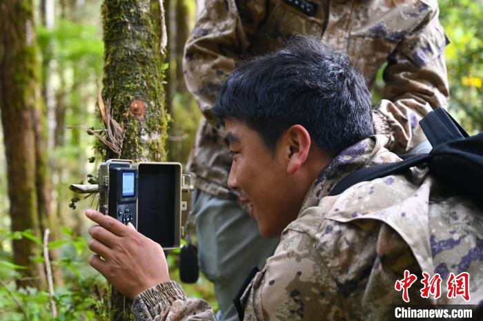 此次進(jìn)山,除了巡護(hù),他們還有個重要的任務(wù),查看原始森林里布設(shè)的紅外相機。“山羊”索朗頓珠憑著記憶帶著大家輕松找到了林中布設(shè)的紅外相機。紅外相機正常運行,影像記錄了待辨認(rèn)的野生動物。