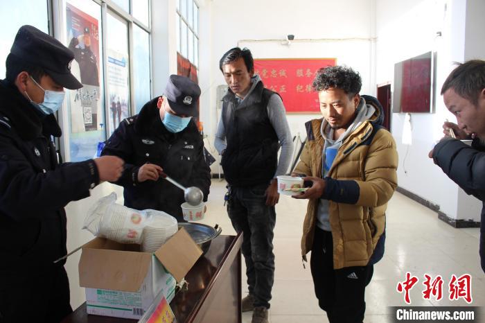 圖為西藏日喀則邊境管理支隊魯魯邊境檢查站民警在便民服務(wù)室為旅客提供暖心服務(wù)。魯魯邊境檢查站供圖