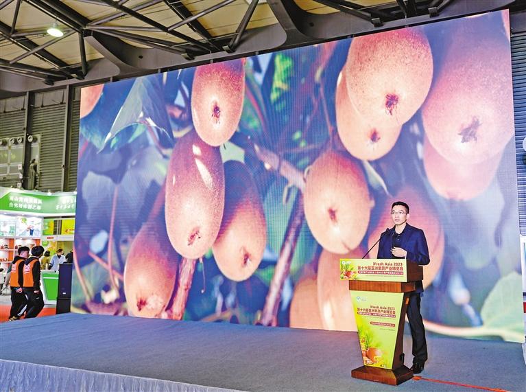 察隅獼猴桃獲得第十六屆iFresh亞洲果蔬產業(yè)博覽會“2023年度受市場歡迎的果品區(qū)域公用品牌”的榮譽。 圖片由本報記者 謝筱純 王珊 攝