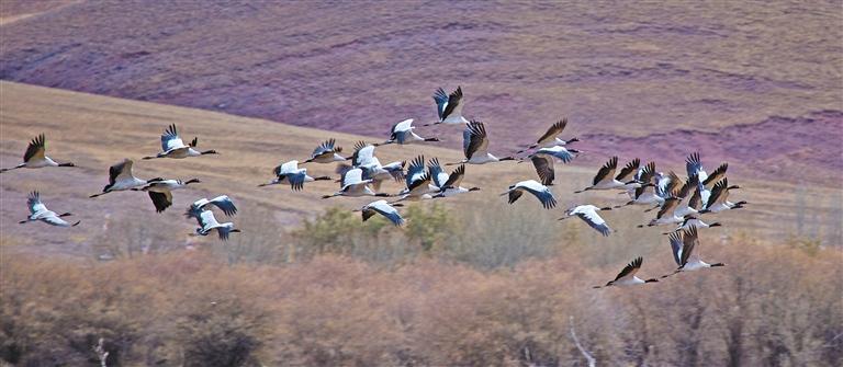 “生態(tài)好不好,看鳥(niǎo)就知道。”近日,在西藏越冬的“老朋友”黑頸鶴越來(lái)越多。每年3月中旬,黑頸鶴會(huì)從越冬地——雅江中游河谷及其支流拉薩河、年楚河流域的“一江兩河”地區(qū),飛去羌塘北部草原等地繁育后代;10月中下旬又從繁殖地——那曲的班戈縣、申扎縣、嘉黎縣,阿里的日土縣、普蘭縣,日喀則的昂仁縣及拉薩的當(dāng)雄縣返回到越冬地。黑頸鶴的成群遷徙、停歇或繁殖,正是生態(tài)環(huán)境持續(xù)向好的“最美注腳”。