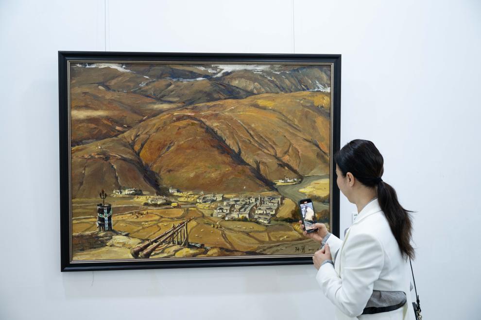 據(jù)主辦方介紹,展覽作品風格獨特、題材多樣,展示了畫家們眼中的社會主義現(xiàn)代化新西藏。觀眾可通過畫展飽覽神山圣湖的自然風貌、純潔樸實的藏胞風釆和獨特的人文風情。