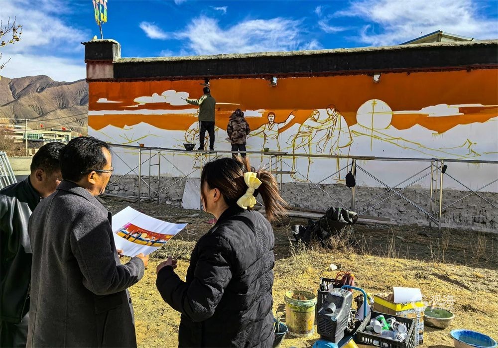 這是在桑珠孜區(qū)委區(qū)政府、青島市第十批援藏干部人才組大力支持下,桑珠孜區(qū)委宣傳部著力于傳承發(fā)展中華優(yōu)秀傳統(tǒng)文化,深度挖掘創(chuàng)新傳統(tǒng)高原文化,展現(xiàn)各民族交往交流交融豐碩成果,培育提升各族群眾文化參與感、獲得感和認(rèn)同感,有效推進(jìn)構(gòu)筑中華民族共有精神家園,由桑珠孜區(qū)委宣傳部、桑珠孜區(qū)創(chuàng)城辦積極開展的鄉(xiāng)村社區(qū)文化墻打造項(xiàng)目,使傳統(tǒng)“牛糞墻”轉(zhuǎn)變?yōu)楝F(xiàn)代“文明墻”的一道桑珠孜亮麗新風(fēng)景。按照項(xiàng)目計(jì)劃,根據(jù)桑珠孜區(qū)實(shí)際情況和條件,桑珠孜區(qū)委宣傳部、創(chuàng)城辦選取了東嘎、聶日雄、曲美、納爾4個(gè)鄉(xiāng)7個(gè)村的23個(gè)點(diǎn)位,分別處于318國道、349國道、208省道通往日喀則西部、西南部、西北部的主干道兩側(cè),依據(jù)桑珠孜鄉(xiāng)村主干道特色文化、風(fēng)貌等為設(shè)計(jì)元素,以墻體彩繪藝術(shù)手段助力美麗鄉(xiāng)村建設(shè),用藝術(shù)助力鄉(xiāng)村振興發(fā)展,以用藝術(shù)改造鄉(xiāng)村的新觀念,在傳統(tǒng)文字、廣告等形式表述觀念下用藝術(shù)畫面形式表達(dá)美麗鄉(xiāng)村、社會(huì)主義核心價(jià)值觀等內(nèi)容,并植入西藏獨(dú)有的人文風(fēng)情、民族文化,以墻體手繪的藝術(shù)手段充分再現(xiàn)民族特色文化并呈現(xiàn)出黨的光輝照耀下雪域高原一片繁榮景象。