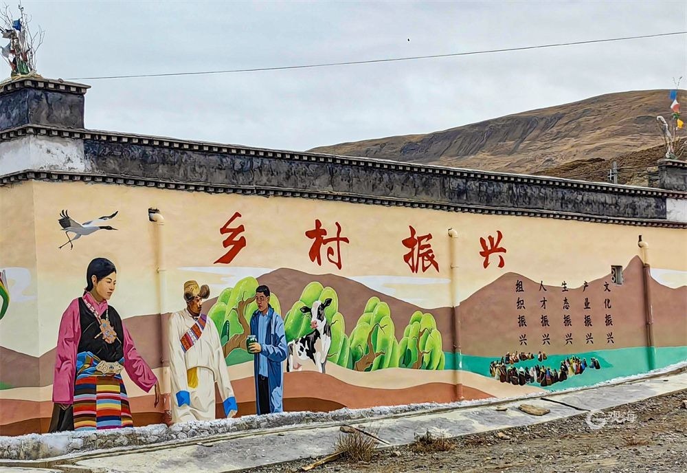 鄉(xiāng)村振興、民族團(tuán)結(jié)、道路安全、移風(fēng)易俗、傳統(tǒng)文化、現(xiàn)代文明、高原特色……各式各樣的場(chǎng)景,現(xiàn)在已經(jīng)出現(xiàn)在了桑珠孜區(qū)東嘎鄉(xiāng)、聶日雄鄉(xiāng)、曲美鄉(xiāng)、納爾鄉(xiāng)部分鄉(xiāng)村的道路兩旁。一幅幅栩栩如生的手繪墻畫,“爬上”了錯(cuò)落有致的藏式小樓,“登上”了一座座藏式院落的院墻,成為一道道亮麗的風(fēng)景線。在干凈整潔的鄉(xiāng)村道路旁,錯(cuò)落有致的農(nóng)家庭院上,粉刷一新的墻面上色彩艷麗的大型墻繪以直觀的畫面和村民喜聞樂見的形式,將鄉(xiāng)村振興、民族團(tuán)結(jié)、移風(fēng)易俗等內(nèi)容與農(nóng)村景觀有機(jī)結(jié)合,讓一堵堵“牛糞墻”有了新活力吸引著過往路人的目光。一幅幅栩栩如生的畫面、一段段民族團(tuán)結(jié)的故事,與鄉(xiāng)村環(huán)境融為一體,形成了“村中有畫、畫中有村”的整體風(fēng)貌;一面面文明和諧、多彩絢麗的彩繪墻,猶如一張張靈動(dòng)的文明標(biāo)簽,將黨的方針政策、藏族同胞的幸福生活活靈活現(xiàn)地展示在墻上,不僅扮靚了鄉(xiāng)村美景,也傳遞了向上向善向美的正能量,處處都能讓人感受到美麗鄉(xiāng)村文明發(fā)展的濃郁氣息。