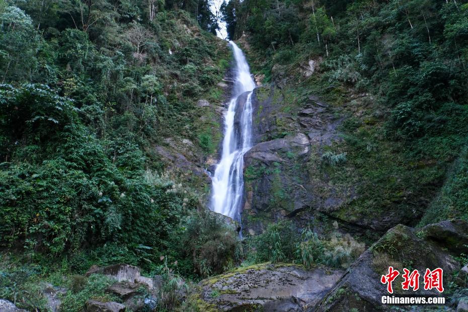 12月21日,西藏墨脫縣亞讓村洞薩漫步瀑布。(無人機畫面)