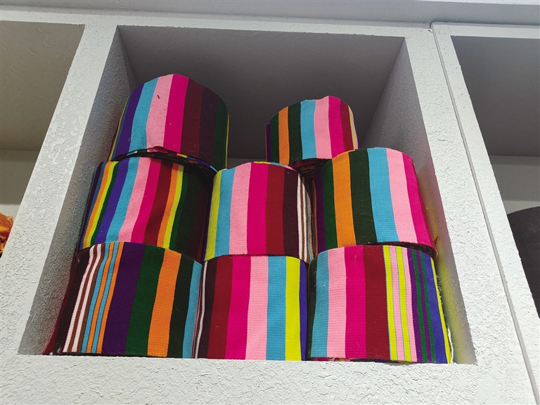 索朗頓珠今年67歲,四年前,本就會點縫紉手藝的他被阿旺曲扎招到公司后,便一直在此工作?!拔乙郧岸际强看蛄愎樯?,如今上了年紀腿腳又不便,在這里工作離家近,還可以靠自己的雙手養(yǎng)活自己,我真的很高興?!彼骼暑D珠說。
