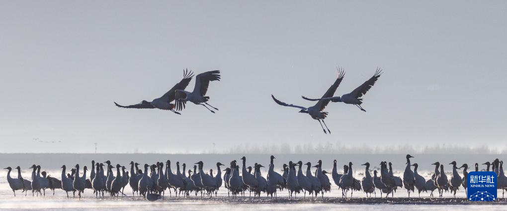 拉薩北部的林周縣平均海拔約4200米,是黑頸鶴的主要越冬地之一。清晨的陽(yáng)光灑在林周縣虎頭山水庫(kù),水面波光粼粼,鶴影婀娜多姿。