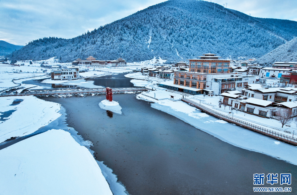 圖為1月3日雪后的魯朗國(guó)際旅游小鎮(zhèn)(無人機(jī)照片)。新華網(wǎng)發(fā) 姚力 攝