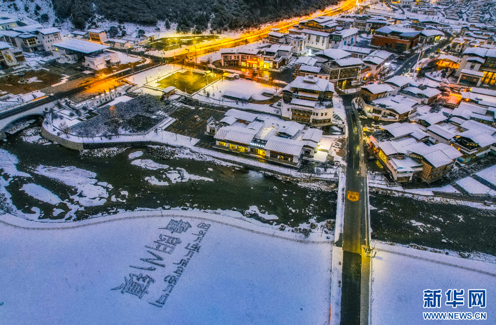 圖為1月3日夜幕初始的魯朗國(guó)際旅游小鎮(zhèn)(無人機(jī)照片)。新華網(wǎng)發(fā) 姚力 攝