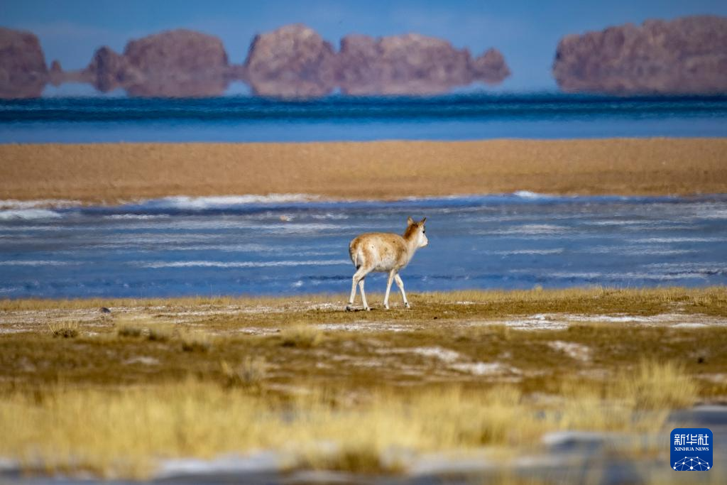這是在色林錯湖畔拍攝到的藏羚羊(1月5日攝)。新華社記者 旦增尼瑪曲珠 攝