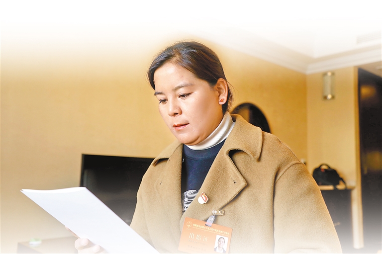 在人大代表駐地見(jiàn)到米瑪普尺時(shí),已是晚上8點(diǎn)多。與去年第一次參加自治區(qū)兩會(huì)時(shí)的緊張心情不同,經(jīng)過(guò)一年錘煉的她多了幾分從容與期待。