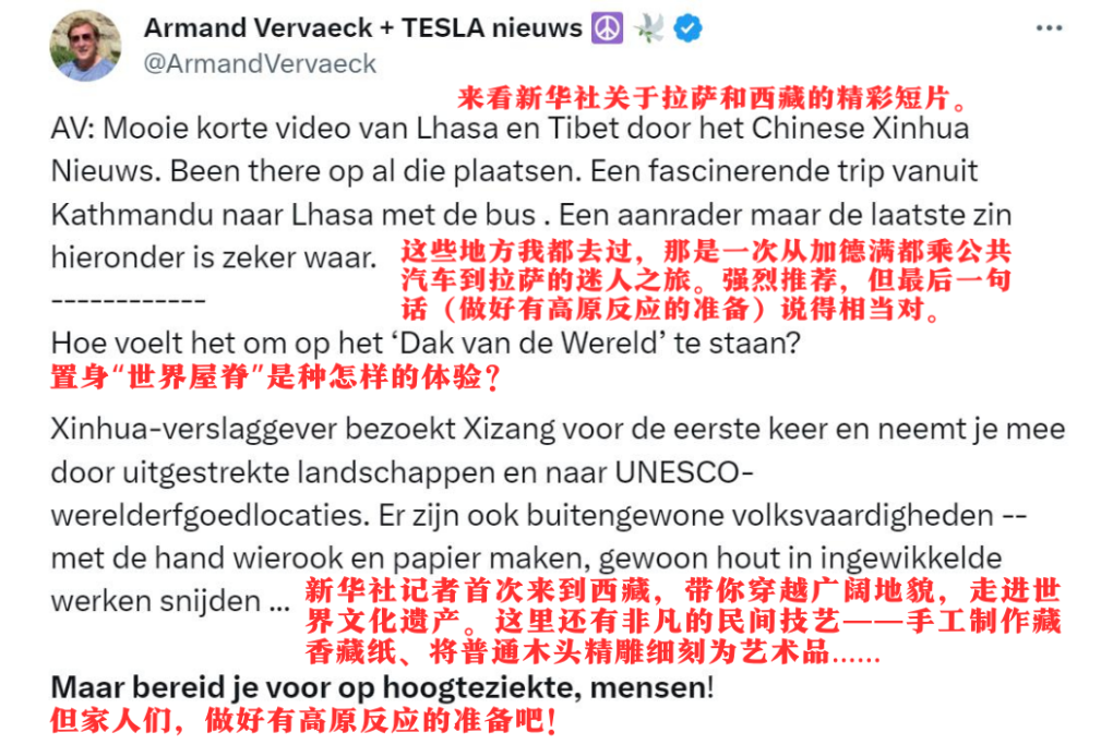 比利時網(wǎng)友阿曼德·韋爾瓦克(Armand Vervaeck)轉(zhuǎn)發(fā)貼文并評論: