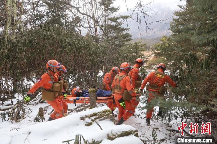 圖為森林消防隊員正在轉運被困人員。袁永斌 攝
