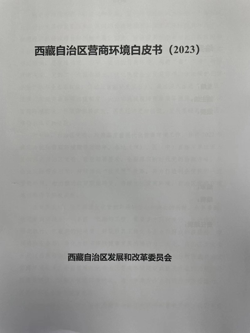 《西藏自治區(qū)營商環(huán)境白皮書(2023)》涵蓋了西藏自治區(qū)、各地(市)營商環(huán)境建設(shè)成效,以及“西藏自治區(qū)優(yōu)化營商環(huán)境十大典型案例”,全面總結(jié)了西藏自治區(qū)打造“四最”營商環(huán)境的首創(chuàng)經(jīng)驗(yàn)和典型做法。
