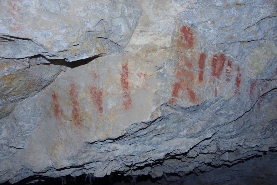 該洞穴的史前文化遺存,于2018年7月在西藏自治區(qū)文物保護研究所和中國科學(xué)院古脊椎動物與古人類研究所聯(lián)合組織的舊石器考古調(diào)查中發(fā)現(xiàn)。經(jīng)國家文物局批準(zhǔn),2018-2023年期間,考古隊連續(xù)開展了6個年度的正式考古發(fā)掘。 除了發(fā)現(xiàn)上萬件各類文化遺物,一號洞壁還發(fā)現(xiàn)了排列有序的豎條紋、人形輪廓、手掌以及太陽等以紅色赭石繪制的巖畫。