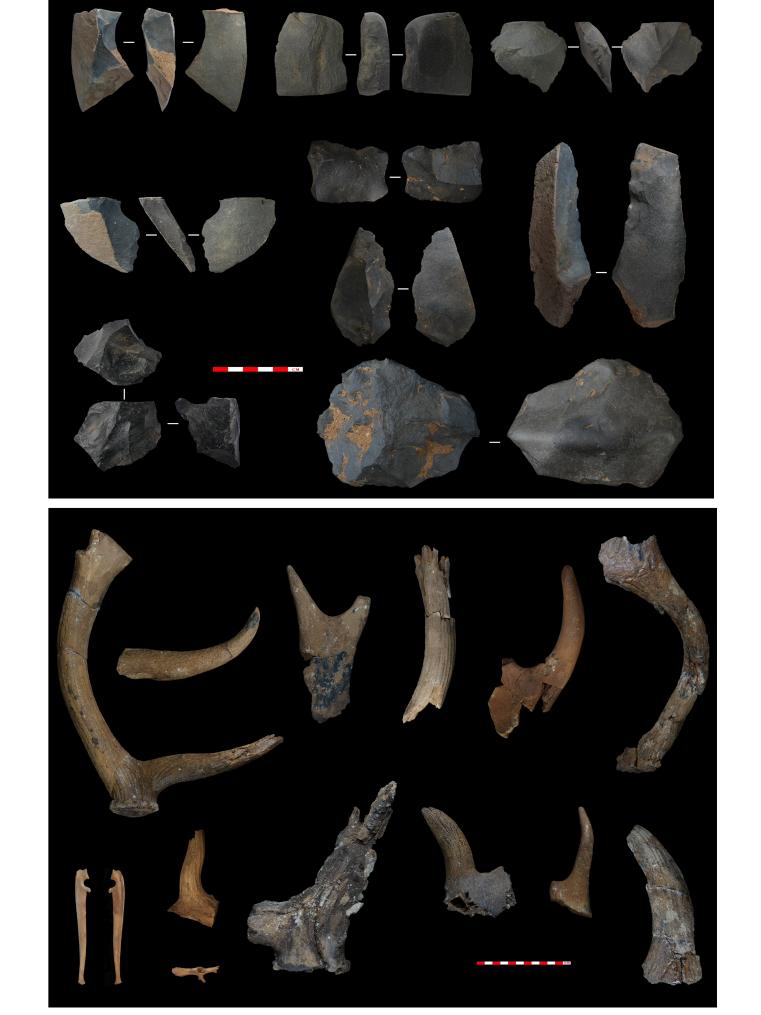 第一期遺存——石制品(上);第一期遺存——?jiǎng)游锘ㄏ拢?。(資料圖片由中國(guó)科學(xué)院古脊椎動(dòng)物與古人類(lèi)研究所提供)