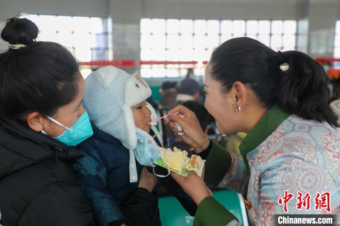 春運(yùn)首日,拉薩車務(wù)段在日喀則站候車大廳開展“溫馨出行 文明出行”主題活動,火車站青年職工帶來了日喀則當(dāng)?shù)靥厣顝棾?,并為旅客送上溫暖的甜茶,和旅客一起分享蛋糕慶祝日喀則站第十個春運(yùn)等活動,營造出喜迎新春的節(jié)日氛圍。