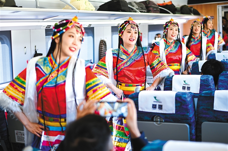1月26日,中國(guó)鐵路青藏集團(tuán)有限公司西寧客運(yùn)段文藝小分隊(duì)在列車上為旅客表演。