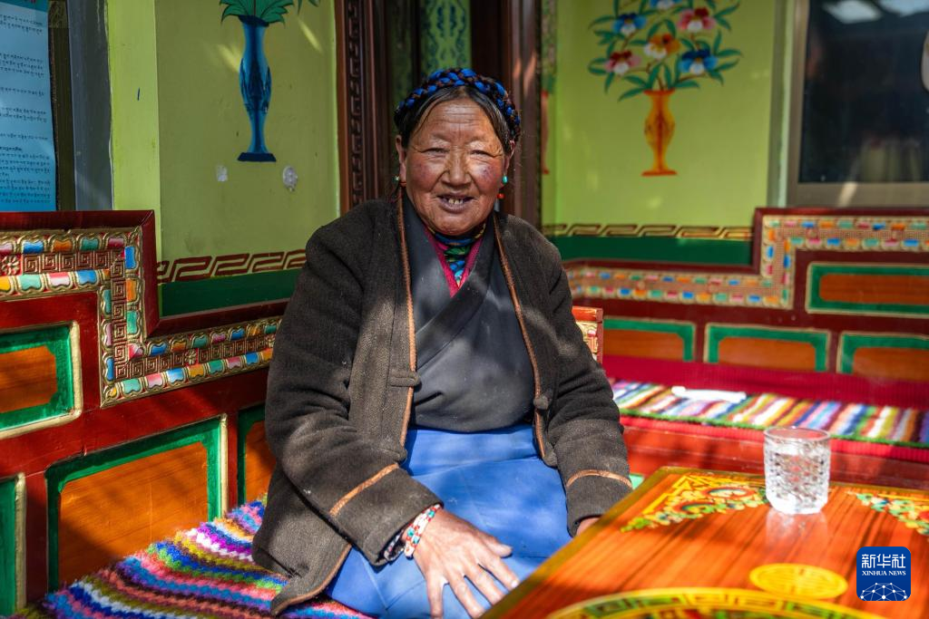 措姆是村里第三高齡的人,談?wù)f起村里的變化,她有很多話要說。“現(xiàn)在的日子幸福,冬天也不怕風(fēng)雪……真心感謝黨的好政策!”