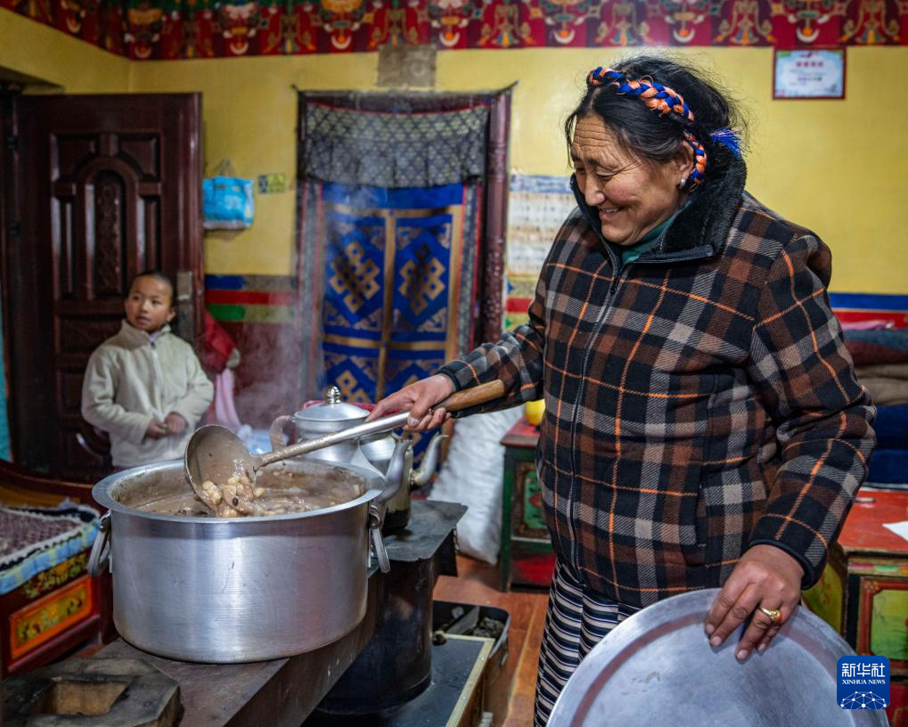 在西藏拉薩市當(dāng)雄縣公塘鄉(xiāng)甲根村,整個(gè)村子沉浸在節(jié)日氣氛中。村里的斯曲旺姆老人家四世同堂,房屋寬敞明亮。手里捧著盛滿“古突”的木碗,斯曲旺姆老人希望這樣的幸福能長(zhǎng)長(zhǎng)久久。