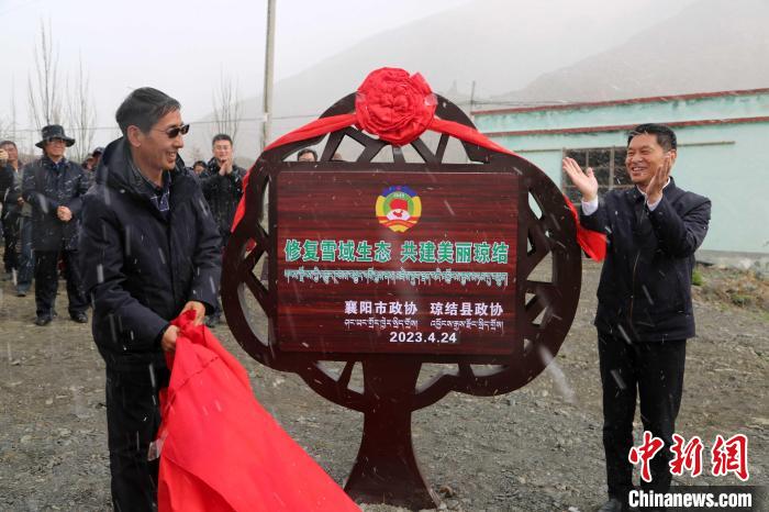 資料圖為襄陽、瓊結(jié)兩地政協(xié)在瓊結(jié)縣東嘎社區(qū)東嘎溝為民族團(tuán)結(jié)友誼林揭牌。曲杰 供圖