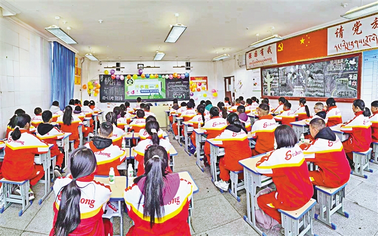 在林芝市第二小學(xué),學(xué)校布置了喜慶的龍年裝飾,教室文化墻裝點(diǎn)一新,老師們分發(fā)起糖果、牛奶。溫暖的“小驚喜”迅速調(diào)動起學(xué)生返校的好心情;波密縣完全小學(xué)利用寒假對所有教室進(jìn)行了粉刷、維修,對學(xué)生食堂進(jìn)行了升級改造,干凈、整潔的校園,讓學(xué)生們格外激動……“今天很開心,見到了老師和同學(xué),也見到了更美麗的校園。新的學(xué)期,我要繼續(xù)做好班干部工作,取得更大的進(jìn)步。”林芝市第二小學(xué)學(xué)生索朗次仁信心滿滿地說。