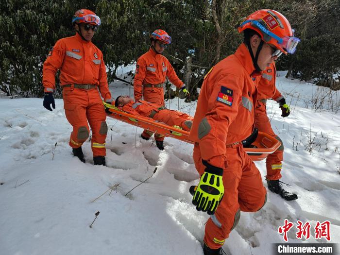 圖為拉練中開展冰雪災(zāi)害失聯(lián)人員搜救訓(xùn)練。西藏林芝市森林消防支隊(duì)供圖