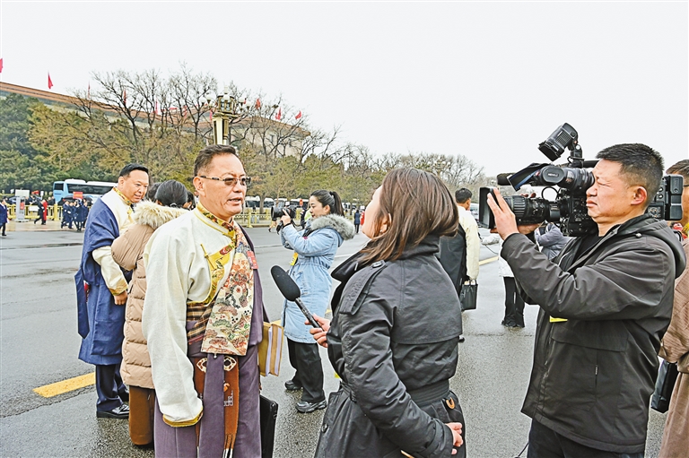 圖為全國人大代表羅慶伍接受媒體采訪。記者 旦增西旦 攝