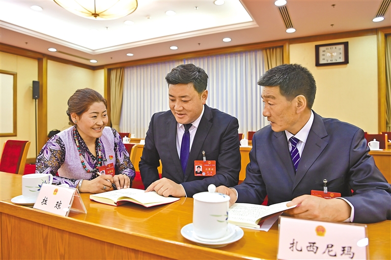 圖為全國人大代表在討論政府工作報(bào)告。記者 旦增西旦 攝