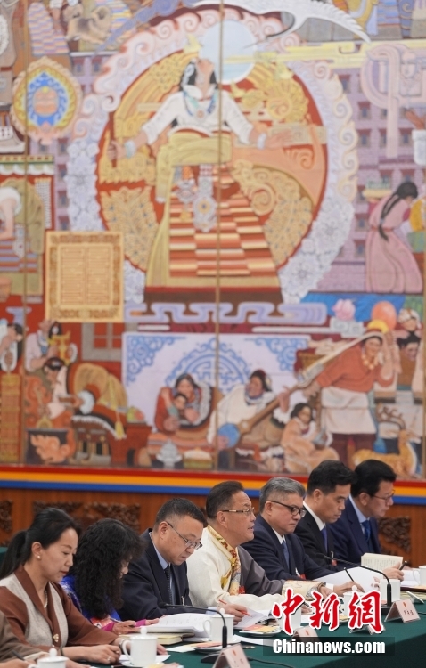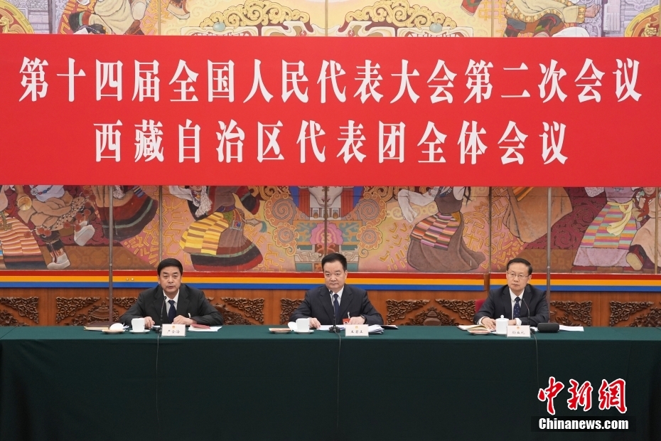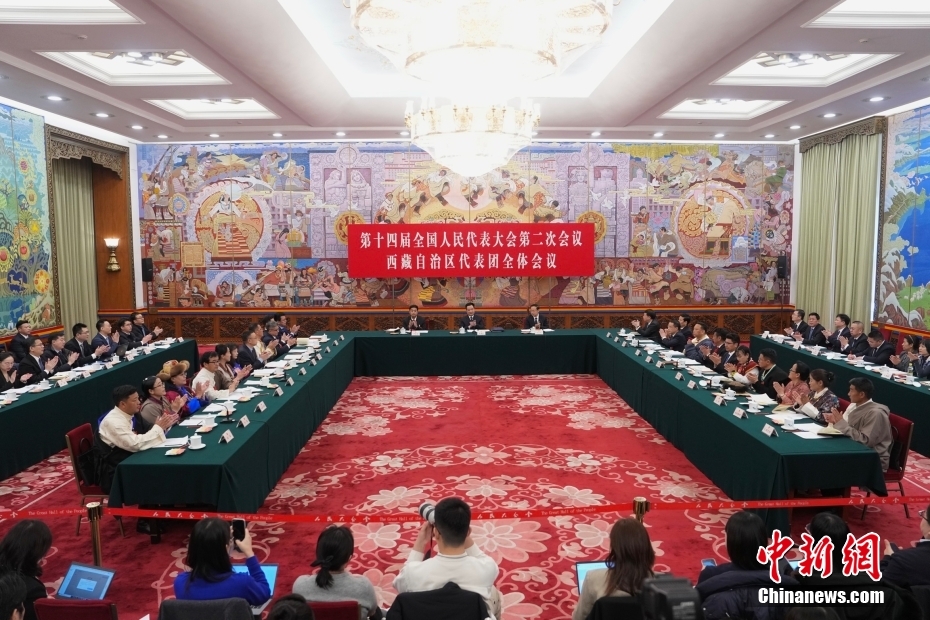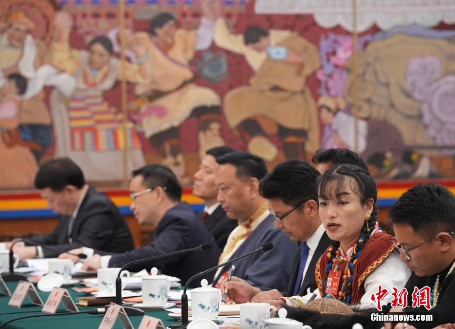 3月6日,出席十四屆全國(guó)人大二次會(huì)議的西藏代表團(tuán)在北京人民大會(huì)堂西藏廳舉行開(kāi)放團(tuán)組會(huì)議,審議政府工作報(bào)告并回答記者提問(wèn)。
