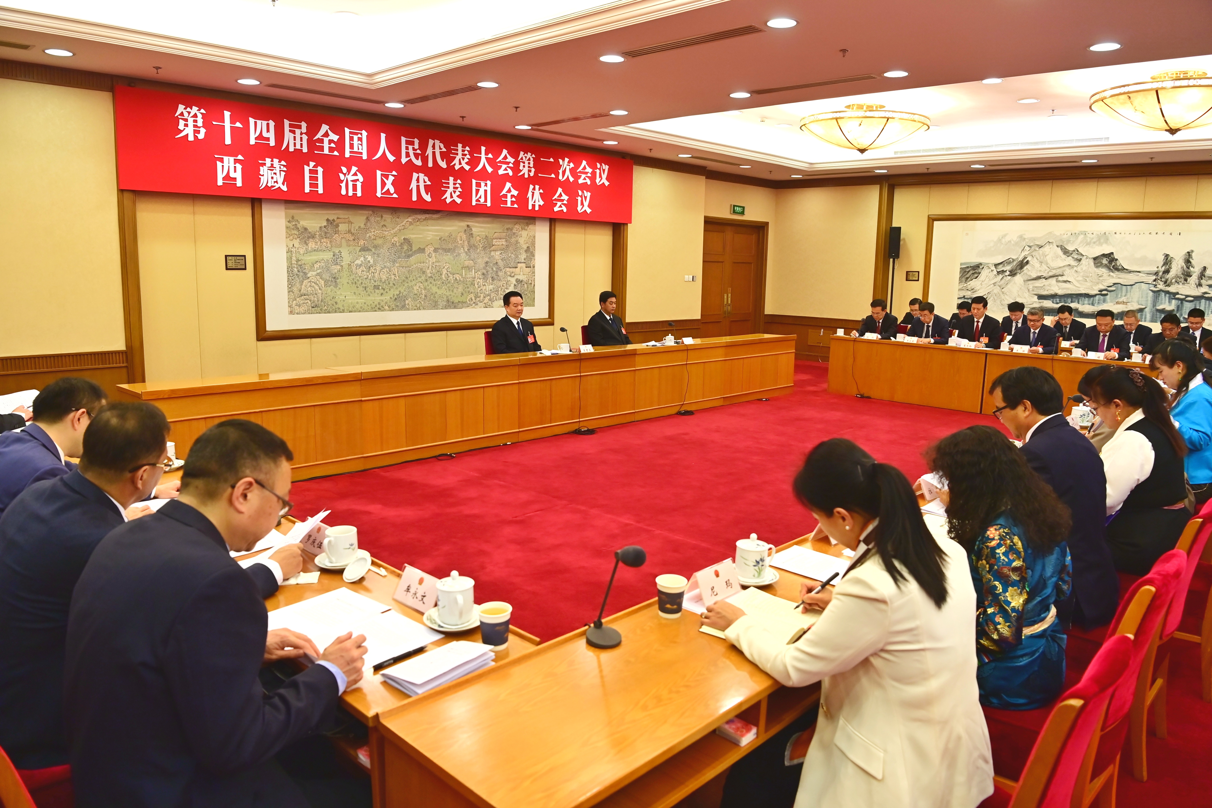 西藏代表團(tuán)團(tuán)長(zhǎng)、自治區(qū)黨委書(shū)記王君正,西藏代表團(tuán)副團(tuán)長(zhǎng)、自治區(qū)主席嚴(yán)金海參加。