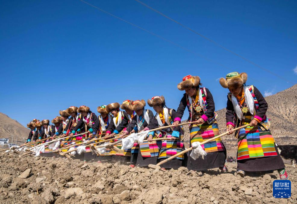這是3月16日拍攝的西藏山南市瓊結(jié)縣加麻鄉(xiāng)加麻村的春耕儀式現(xiàn)場(chǎng)。新華社記者 旦增尼瑪曲珠 攝