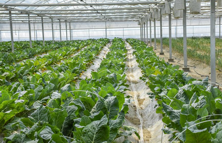 戈壁設施農業(yè),不是簡單地在戈壁灘上開墾土地發(fā)展農業(yè),而是要將光、熱、水、肥、土壤等一系列生產要素進行合理配置。綠之源的規(guī)劃建設,走出了一條節(jié)地、節(jié)水、高效循環(huán)的戈壁生態(tài)農業(yè)發(fā)展路子。節(jié)地,充分利用了閑置的戈壁荒灘資源,不占耕地,有效解決了菜糧爭地矛盾;節(jié)水,日光溫室作物生產,全部配套了膜下滴灌技術,使有限的水資源得到了高效利用;高效循環(huán),溫室采取“套種”種植模式,讓土地不空茬,連作多種作物,有效提高溫室利用率,實現(xiàn)“全年種植、全年采收”,改善了土壤沙化環(huán)境,提升了土壤地力,更是提高了蔬菜品質。