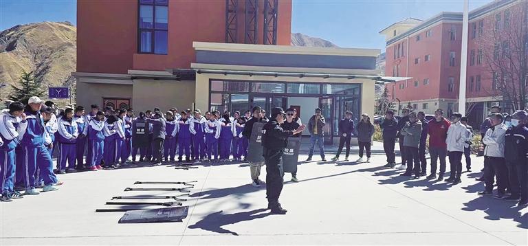 民警開展安全演練進(jìn)校園活動。 圖由拉薩市公安局治安管理支隊提供