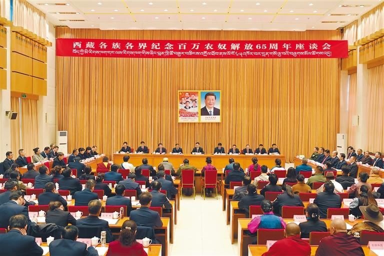 3月28日,西藏各族各界紀(jì)念百萬農(nóng)奴解放65周年座談會在拉薩召開。