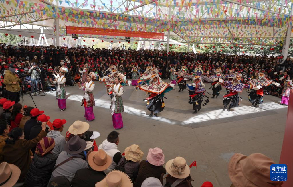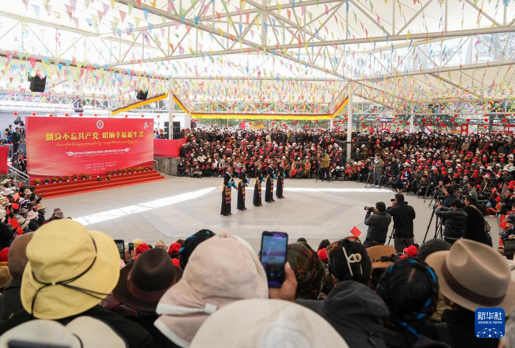 3月28日,群眾在拉薩市宗角祿康公園內(nèi)觀看文藝演出,慶祝西藏百萬(wàn)農(nóng)奴解放65周年。新華社記者 姜帆 攝