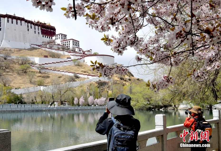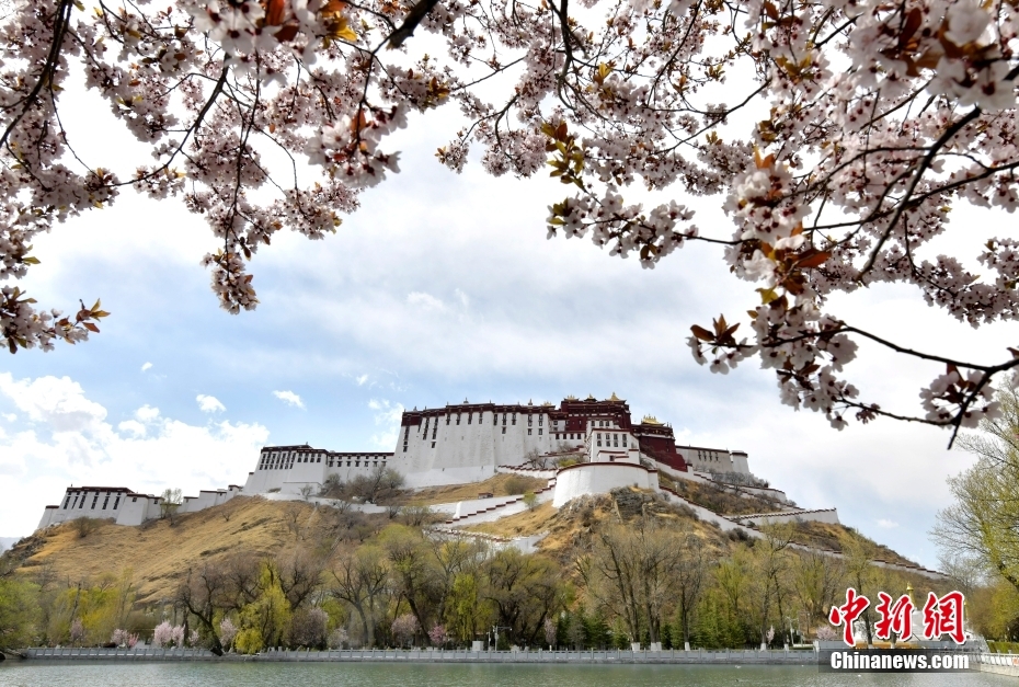 4月6日,西藏拉薩布達(dá)拉宮腳下春花綻放,與布達(dá)拉宮相互映襯。中新社記者 李林 攝
